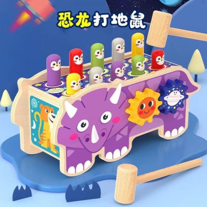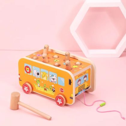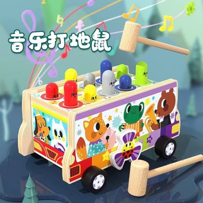 Children's wooden toy elephant dragging and knocking piano playing mole multi-functional educational early education tapping platform wood toy car