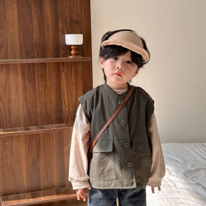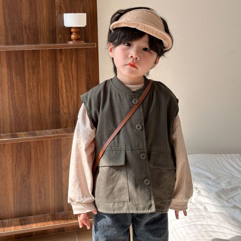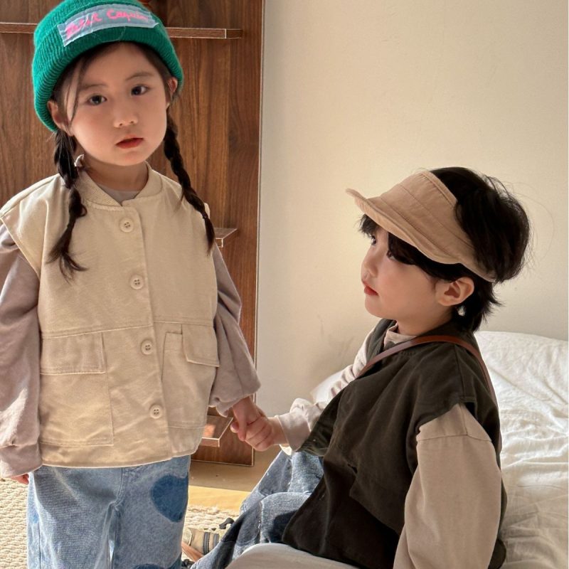 nameOriginal | Children's workwear vest men's clothing 2024 new spring and autumn girls' vest outer wear baby vest coat top |