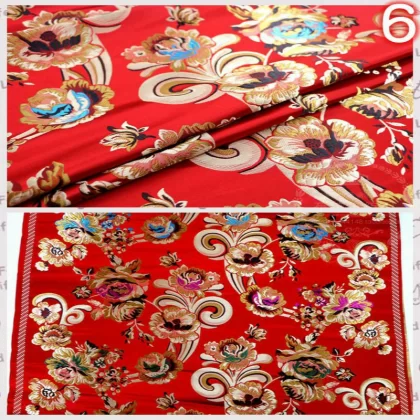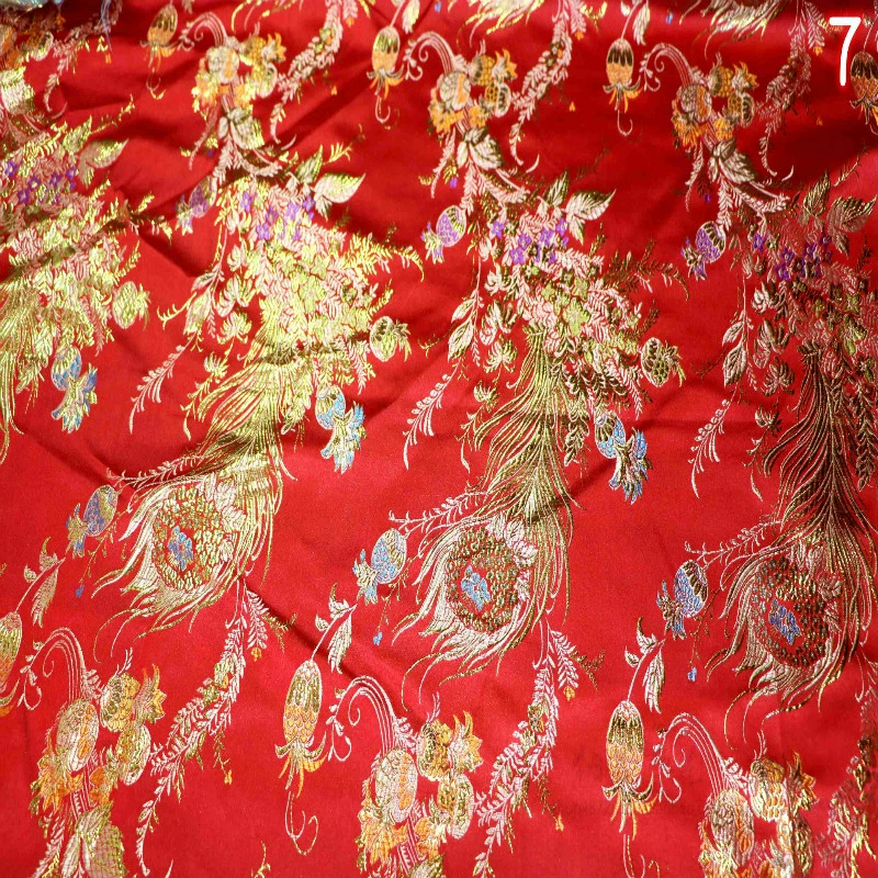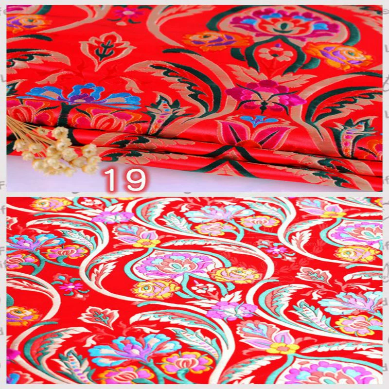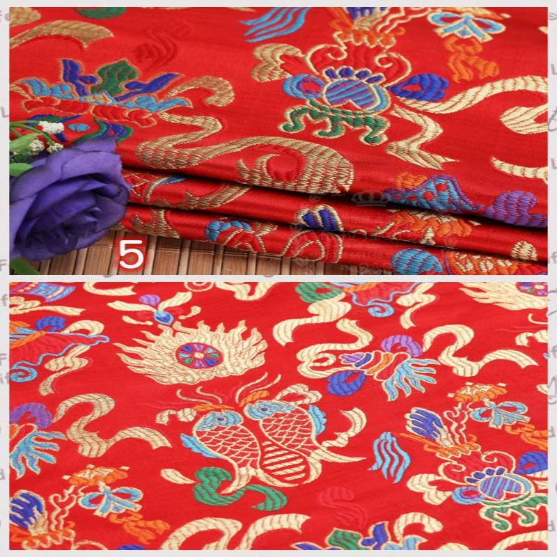Chinese style brocade red background dark pattern jacquard kimono fabric