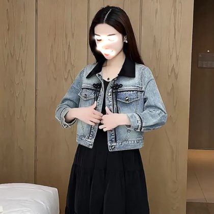 | nameOriginal | Chinese Style buckle Denim coat women's new Chinese style top 2024 spring new heavy industry beaded contrast color short jacket |