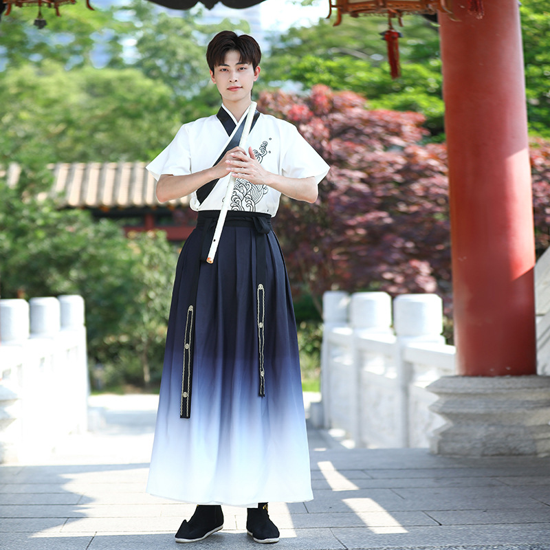 | nameOriginal | Chinese-style chivalrous man large-size men's antique short-sleeved Chinese clothing waist-length skirt two-piece student summer improved Chinese clothing |