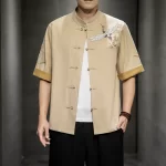 Chinese style contrasting color Tang suit with crane embroidery three-point plate buckle