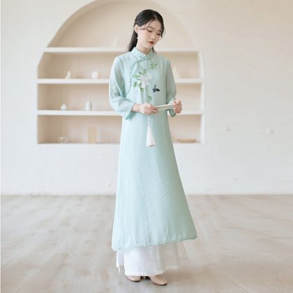 | nameOriginal | Chinese style improved Hanfu cheongsam dress suit two-piece Chinese retro women's tea suit Zen |