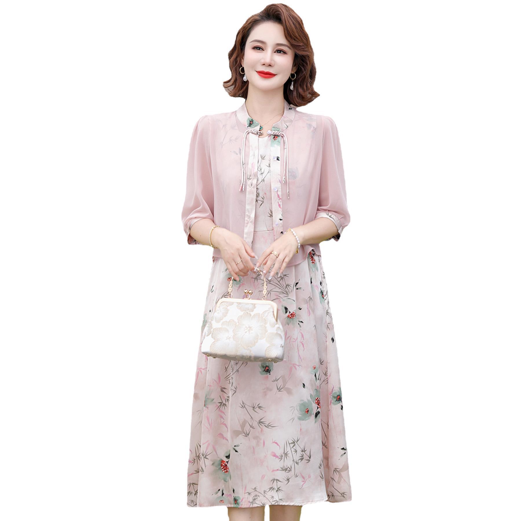 | nameOriginal | Chinese-style Mother's dress Summer suit New Chinese-style Women's Chiffon Top with Buckle Two-piece Set |