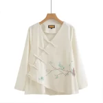 تي شيرت فضفاض على الطراز الصيني بأكمام تسعة أرباع