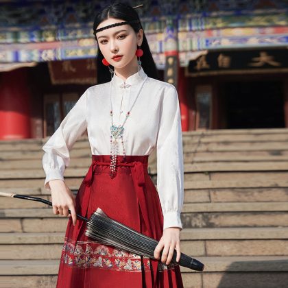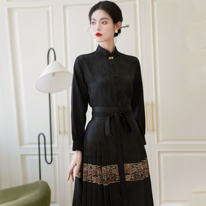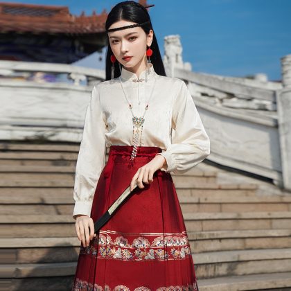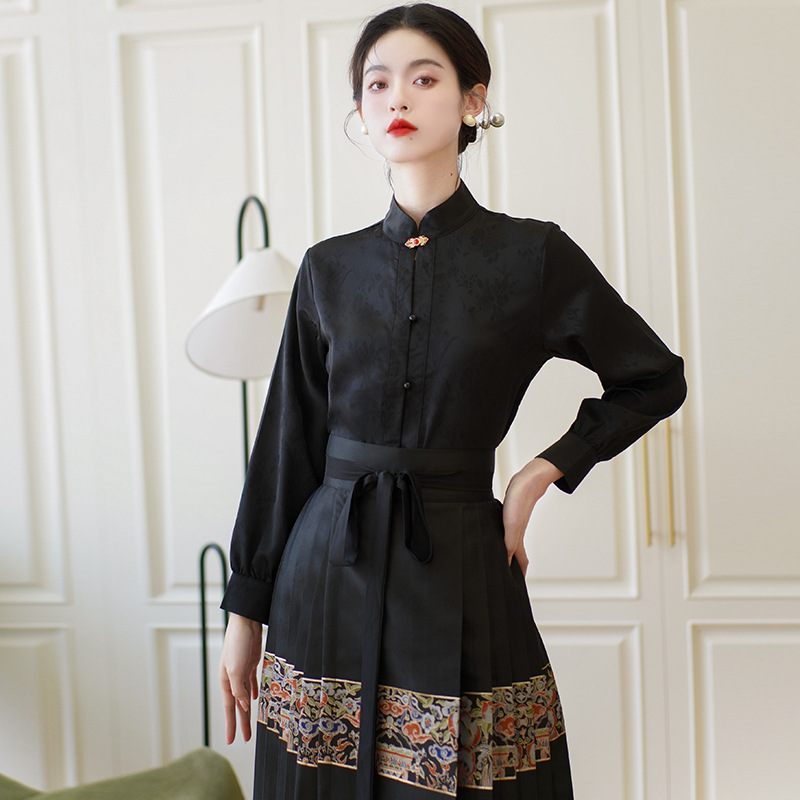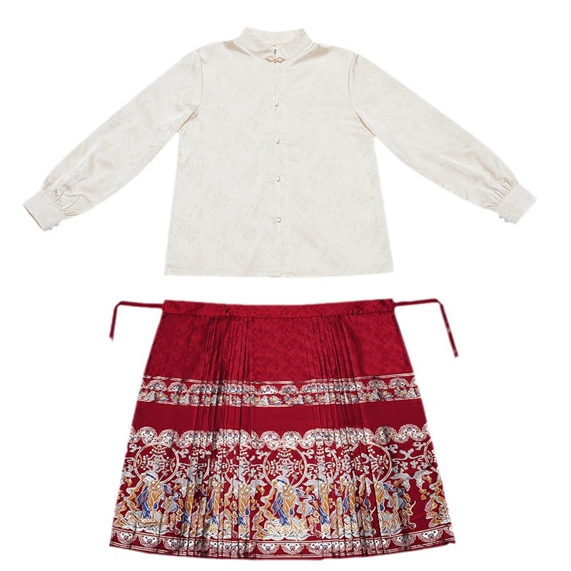 | nameOriginal | Chinese style stand collar buckle National style jacquard shirt national fashion high-end one-piece makeup flower woven gold embroidered vest skirt suit |