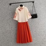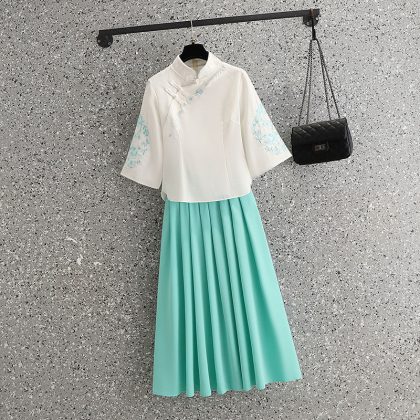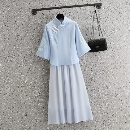 | nameOriginal | Chinese Style Tang Suit Embroidered Cheongsam Vintage Art Improved Large Size Slimming Tea Suit Two-piece Set with Vertical Collar Top |