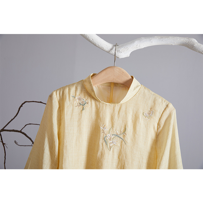 Chinese Style Tea Clothing Women's Summer Suit Zen Style Artistic Chinese Style Improved Buckle Tang Suit High-end Embroidered Ramie Top