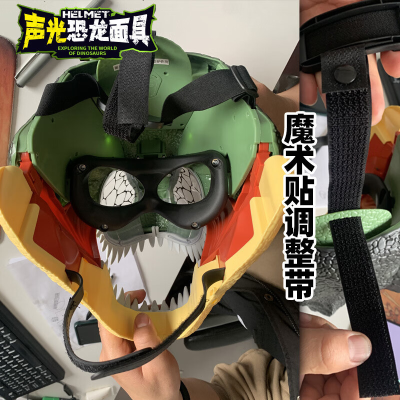 | nameOriginal | Christmas COS children's simulation dinosaur mask Tyrannosaurus rex headgear spoof helmet Tyrannosaurus rex sound and light toy |