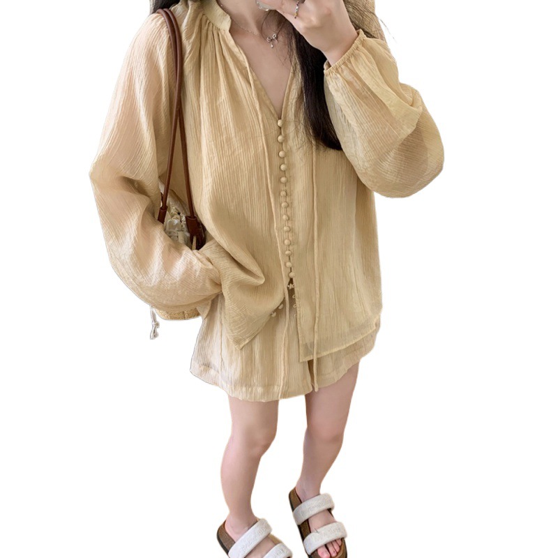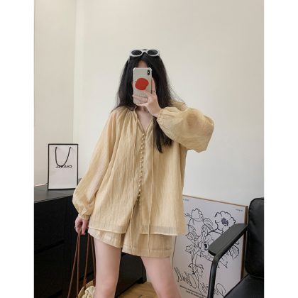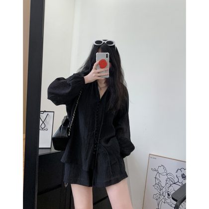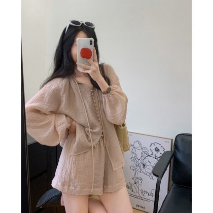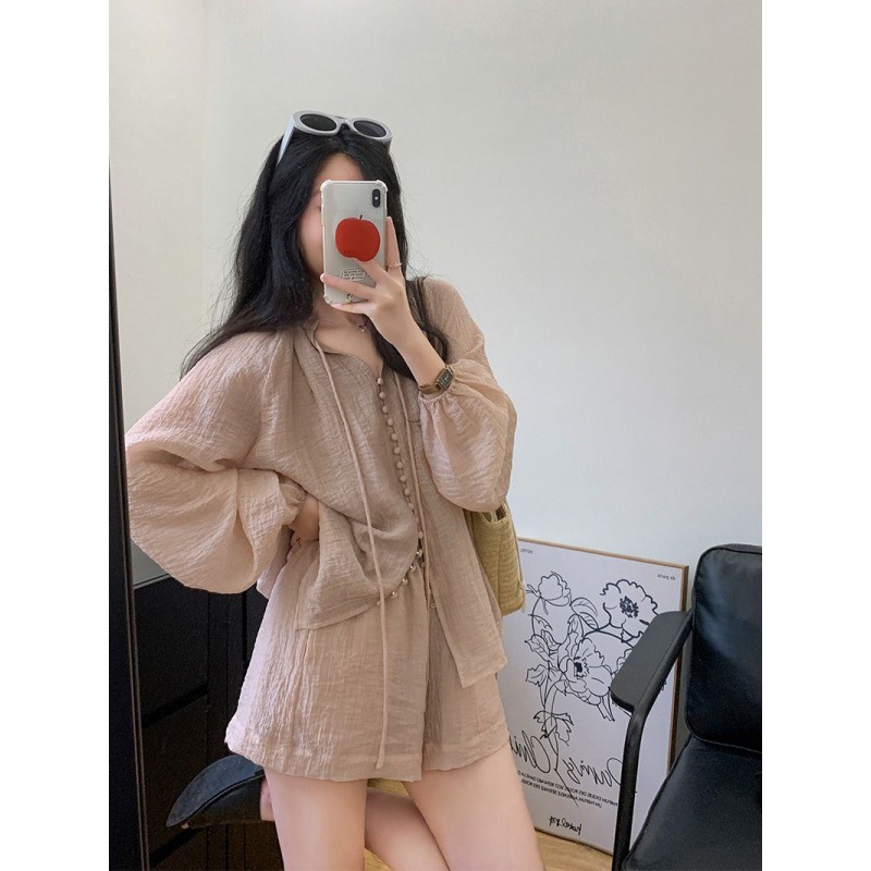 chubby girl Fashion suit Women's Summer 1.00 kg-150.00 kg plus size Loose Niche Sunscreen Thin Jacket Shorts Two-piece Set