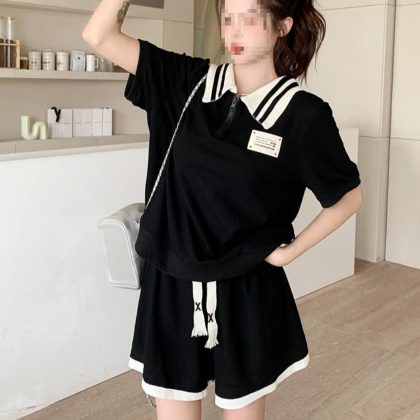 | nameOriginal | chubby girl Korean Style Sweet Age-reducing Casual Simple Loose Polo Collar Pullover Short-sleeve suit |