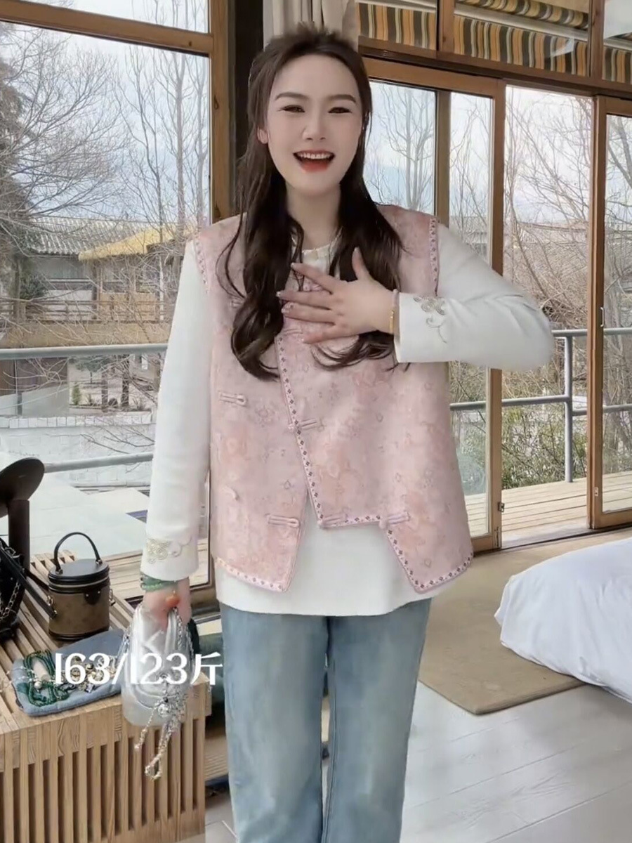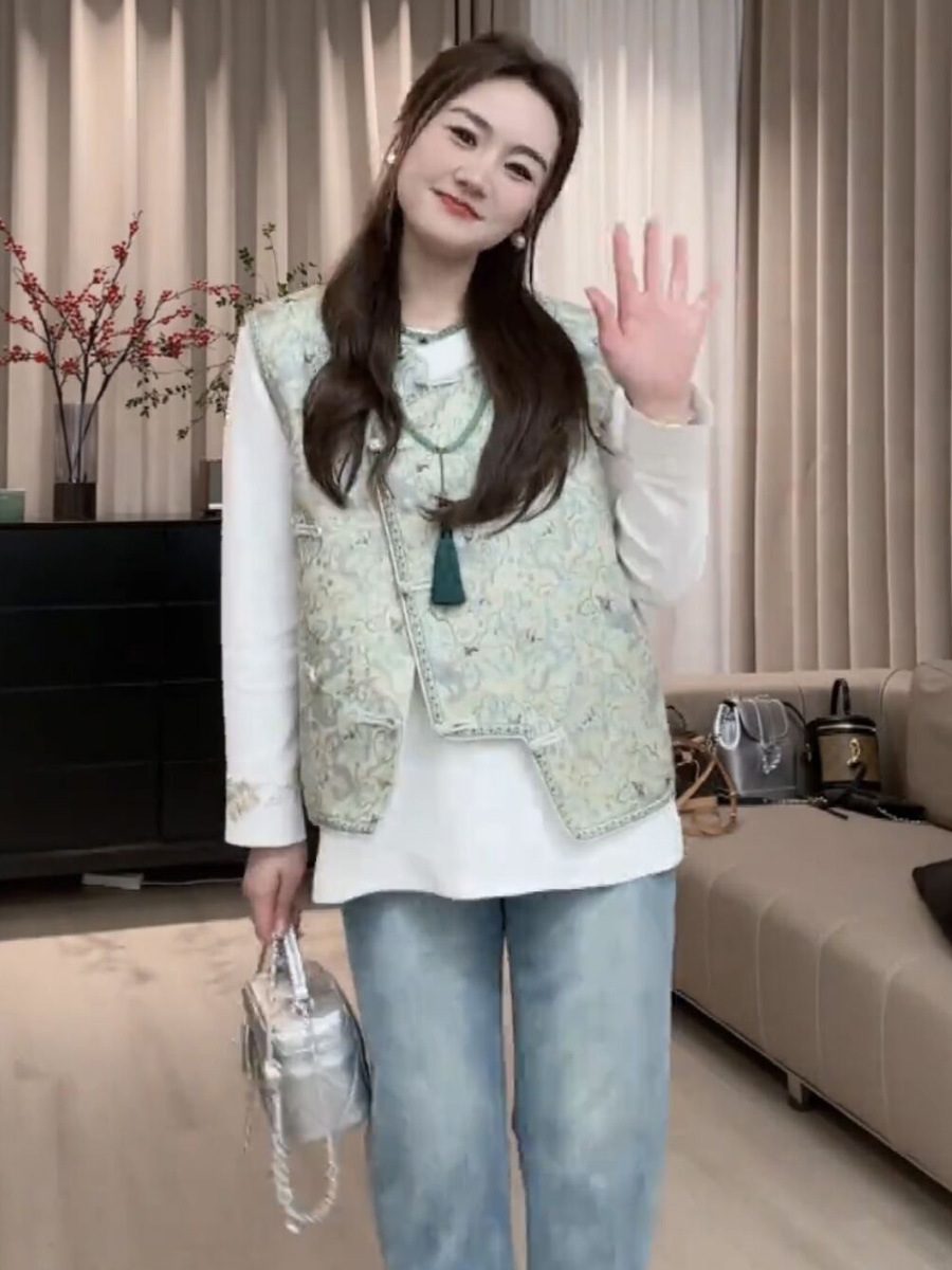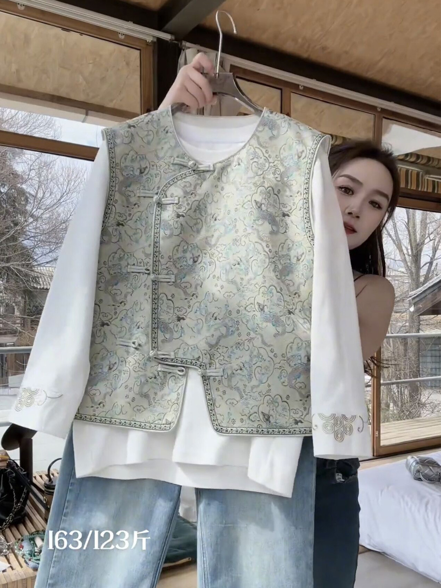 | nameOriginal | Chubby Girls New Chinese Style National Style Jacquard Vest Jacket Women's Spring plus size Slimming Elegant Vest Top |