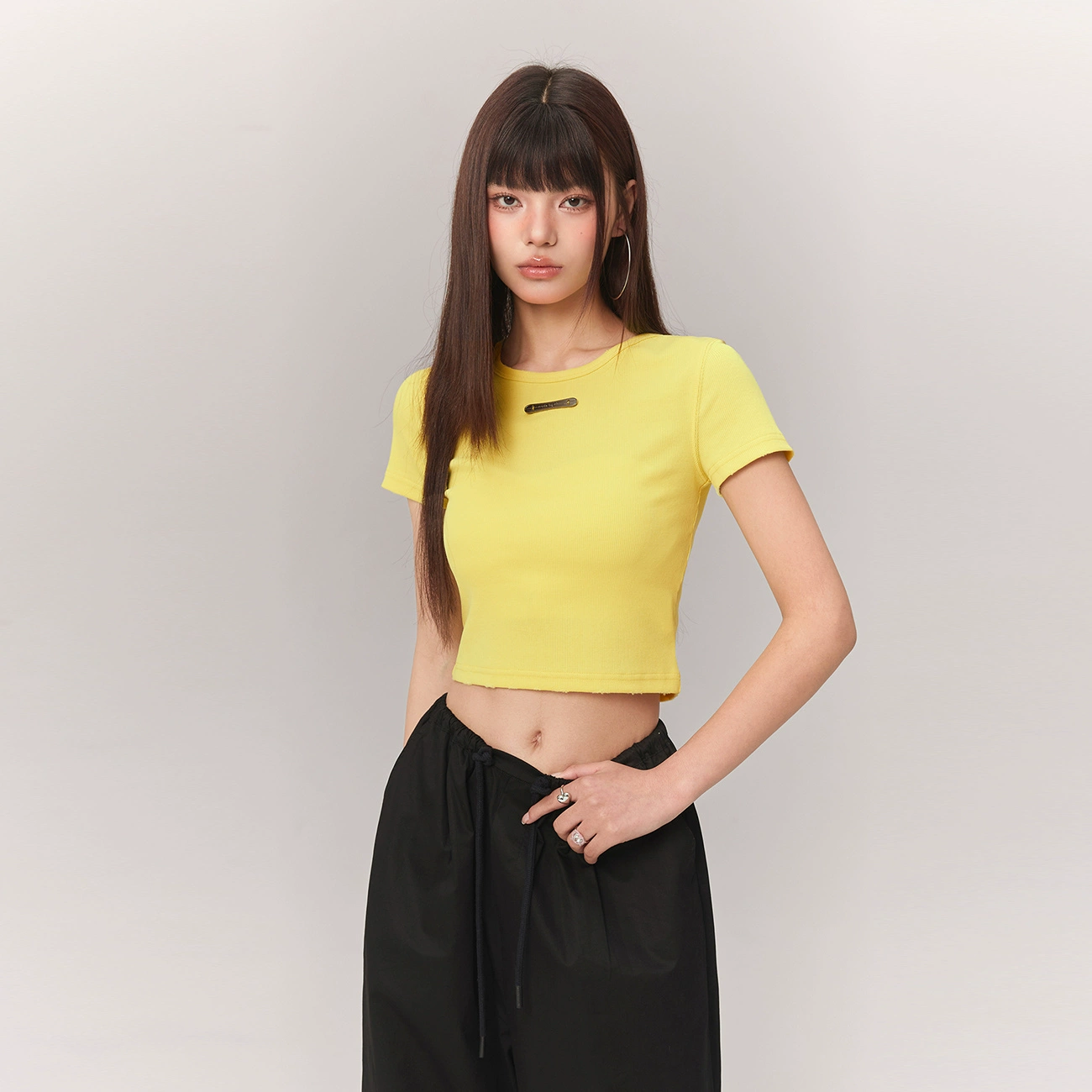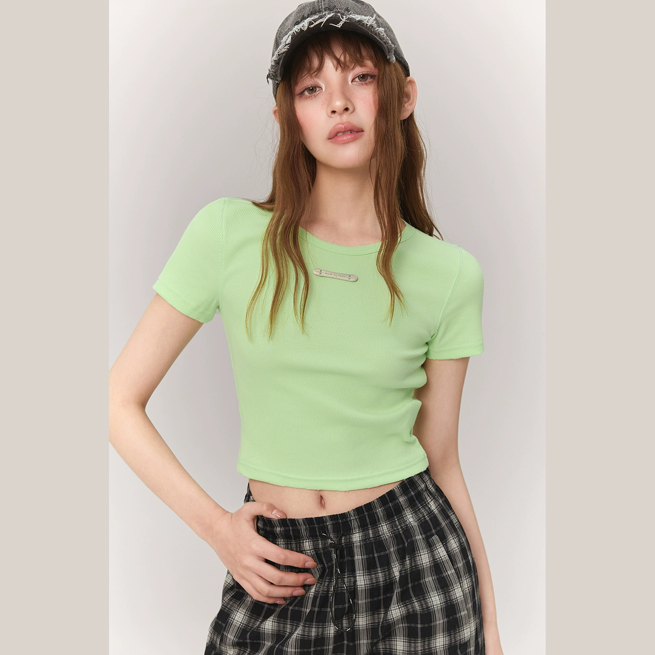 | nameOriginal | CHUU metal label worn hot girl slim short-sleeved T-shirt |