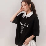 CHUU short-sleeved lapel patchwork loose bow print
