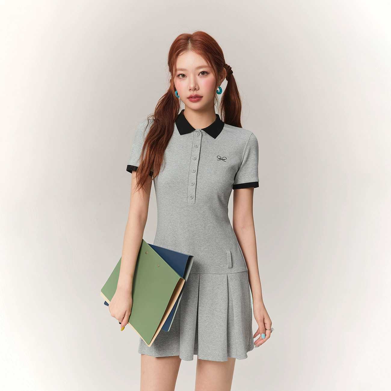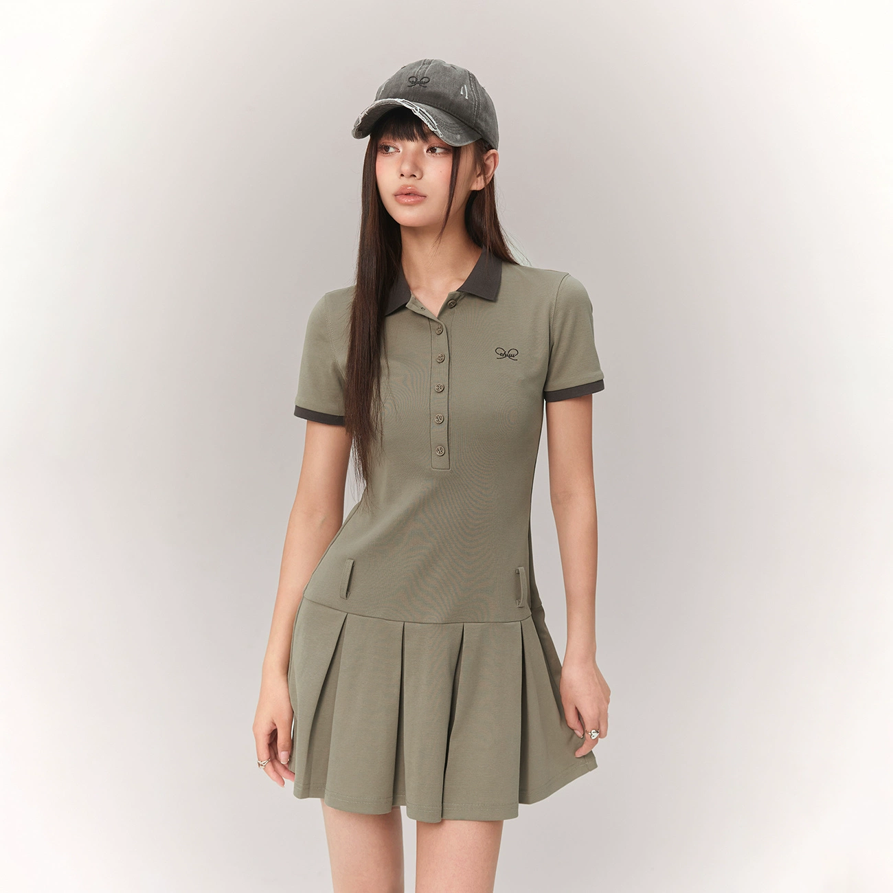 | nameOriginal | CHUU summer embroidered contrast short-sleeved pleated dress |