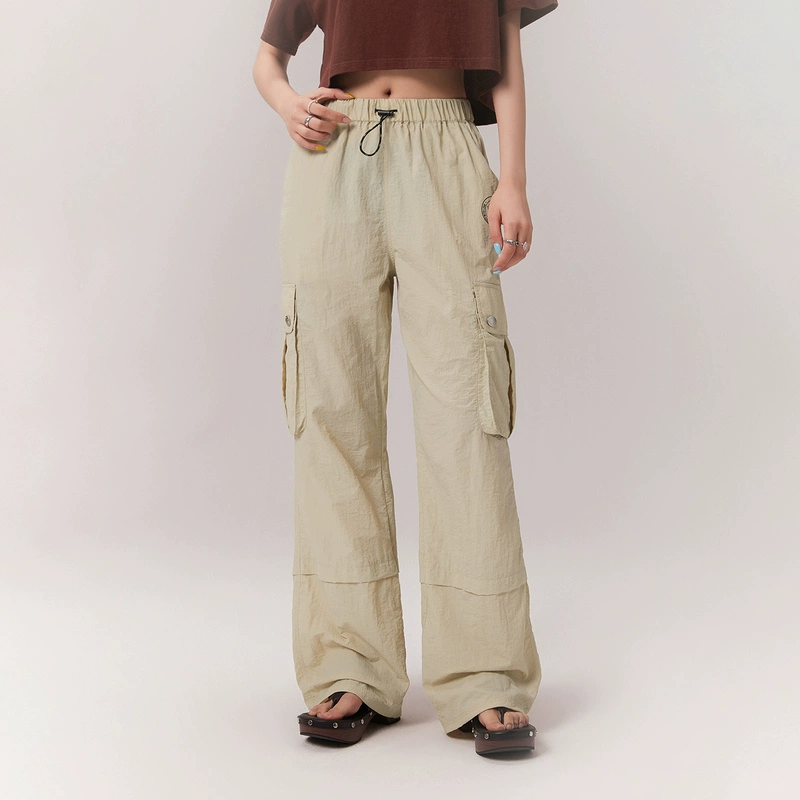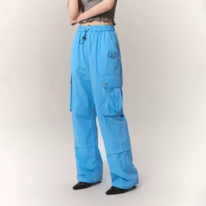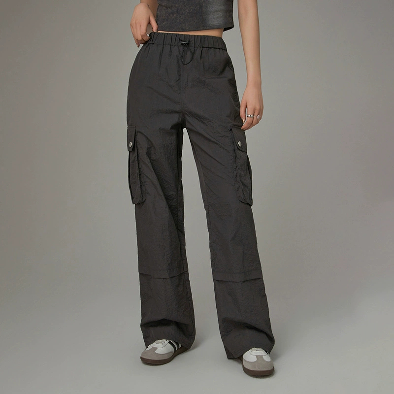Chuu واسعة الساق فضفاضة متعددة جيوب رسم أنبوب مستقيم للعامل