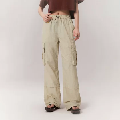CHUU wide leg elasticated multi-pocket workwear straight drawstring