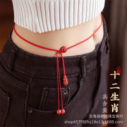 Cinnabar twelve Zodiac red rope chain female birth year Rabbit year belt hand-woven waist decoration wholesale delivery
