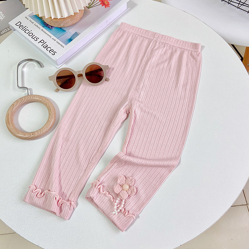 | nameOriginal | Class A pure cotton girls' cropped boneless leggings summer thin girls' lace jacquard bow slim-fit children's pants |