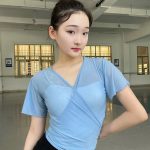 Classical Dance Gauze Clothes Short Sleeve Slim Fit Foundation Training Body Rhyme Dance Clothes Practice Clothes Butterfly Sleeve Blouse Adult Women's Top