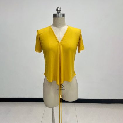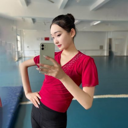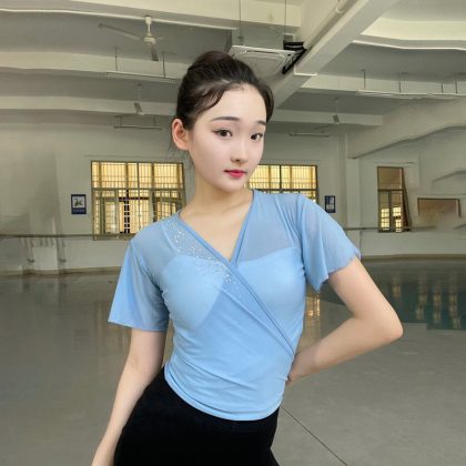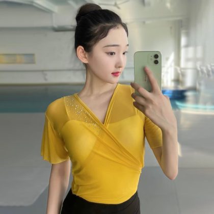 Classical Dance Gauze Clothes Short Sleeve Slim Fit Foundation Training Body Rhyme Dance Clothes Practice Clothes Butterfly Sleeve Blouse Adult Women's Top