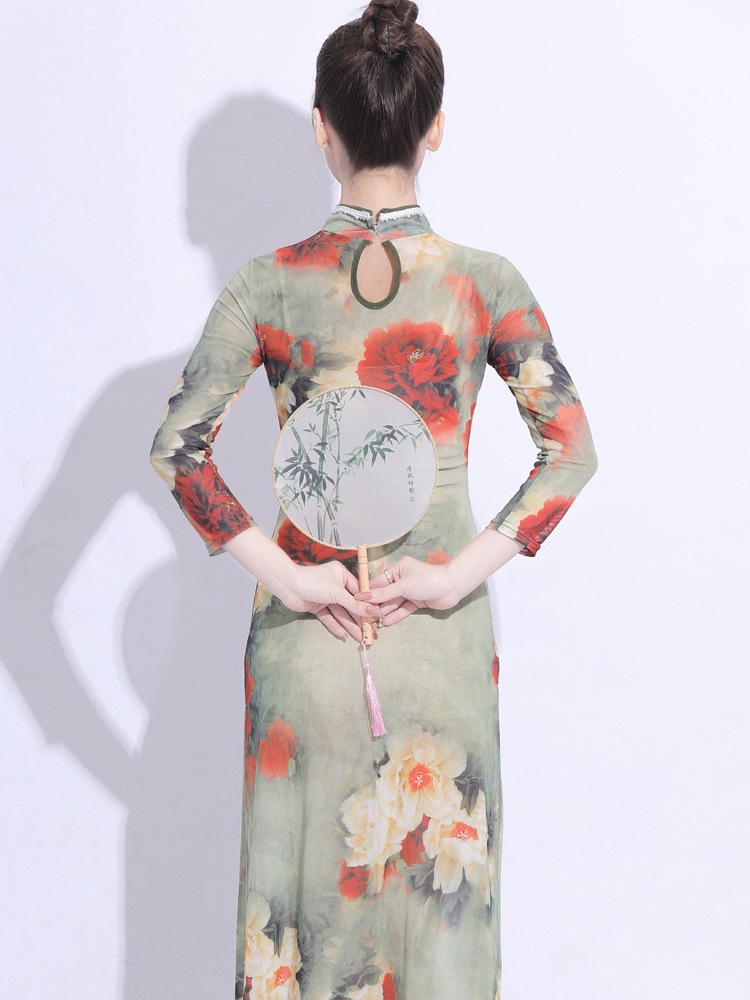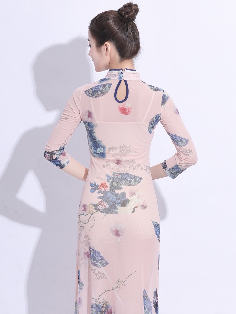 | nameOriginal | Classical dance long cheongsam gauze long dance elegant performance clothing female body Chinese dance practice clothing performance clothing |