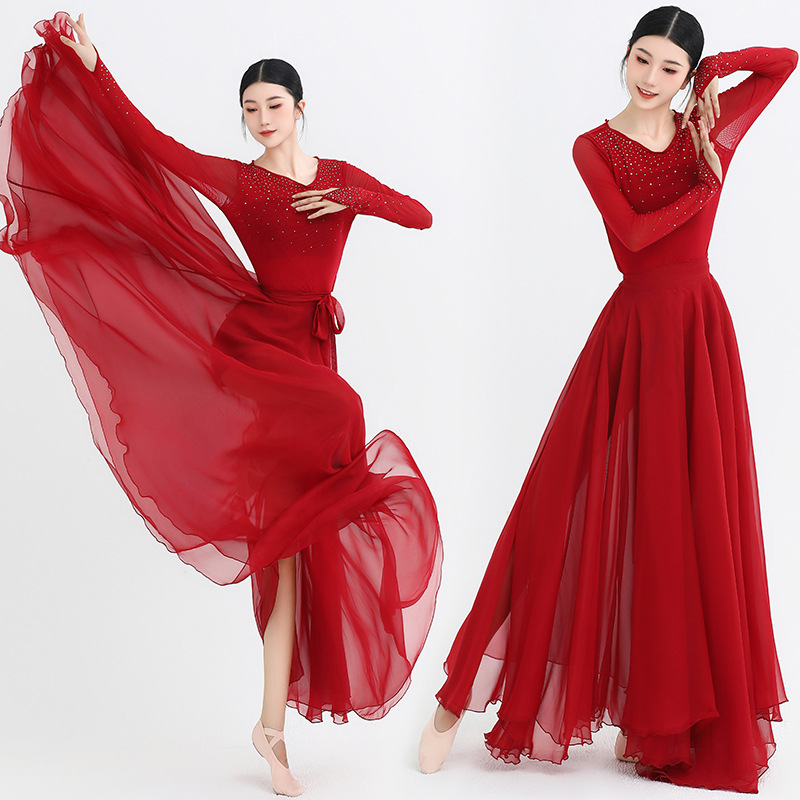 | nameOriginal | Classical Dance Suit My Motherland Wanjiang Red Hot Drilling Long Sleeve Shirt Large Dress National Day Dance Suit Performance |