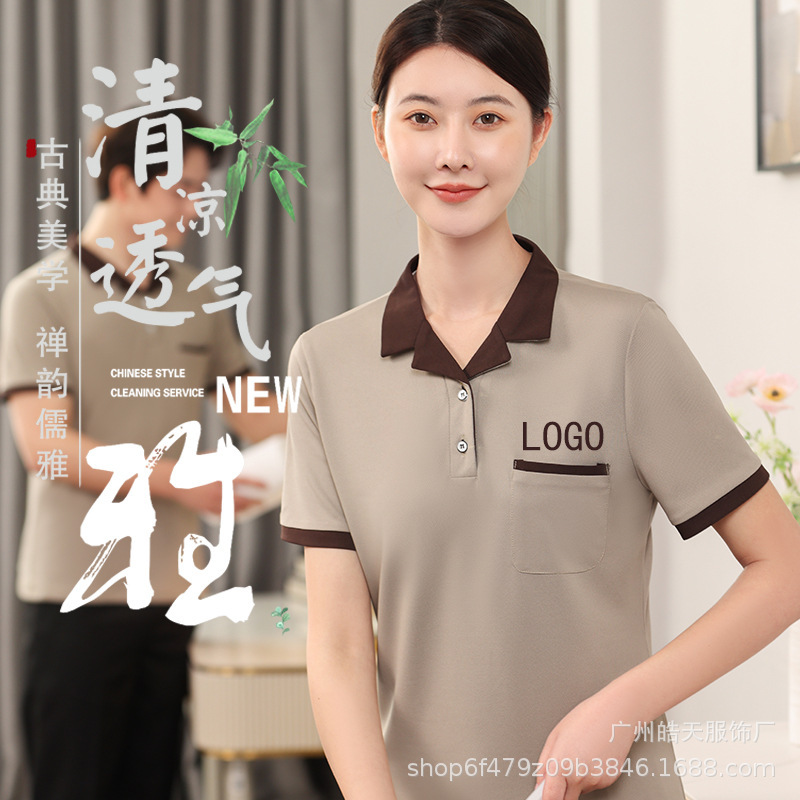 | nameOriginal | Cleaning overalls short sleeve summer cotton women's housekeeping hotel room property PA cleaner aunt T-shirt suit t |
