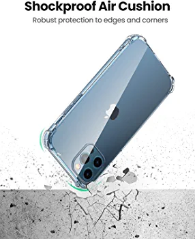 جراب شفاف ونحيف لهاتف آيفون 12/12 برو من UGREEN مصنوع من مادة TPU مع مصد رباعي الزوايا للحماية من الصدمات ومقاومة الخدوش.