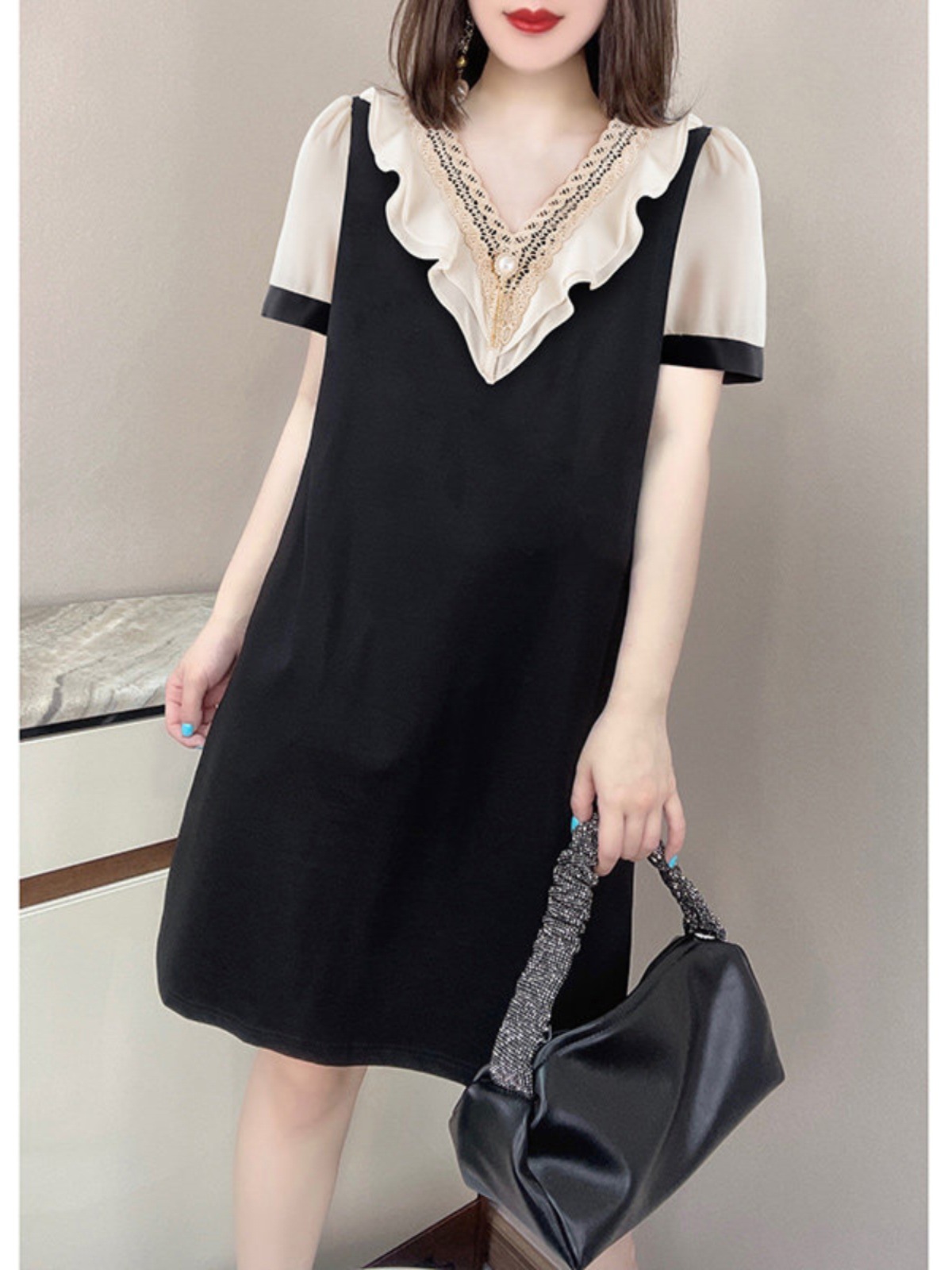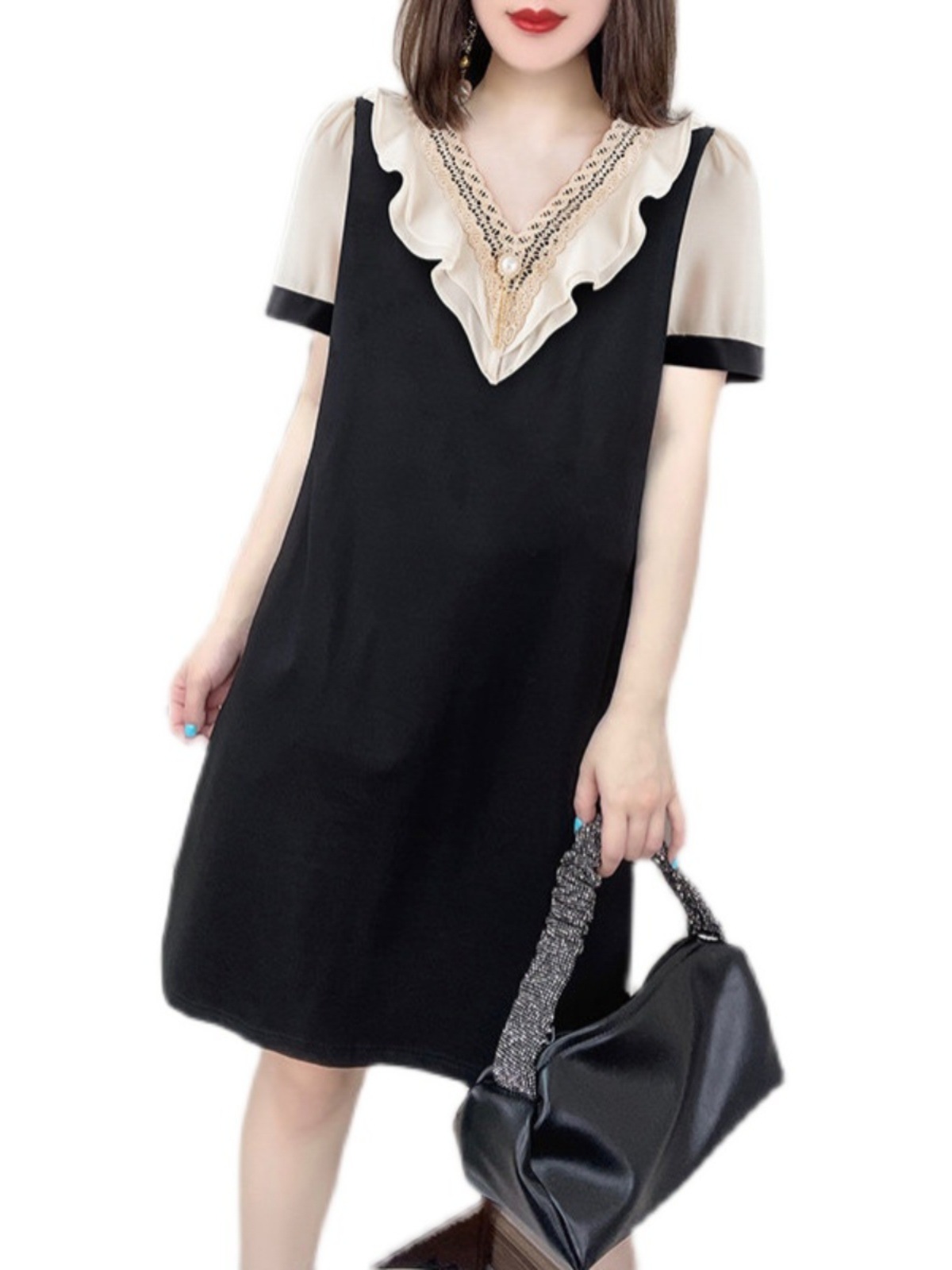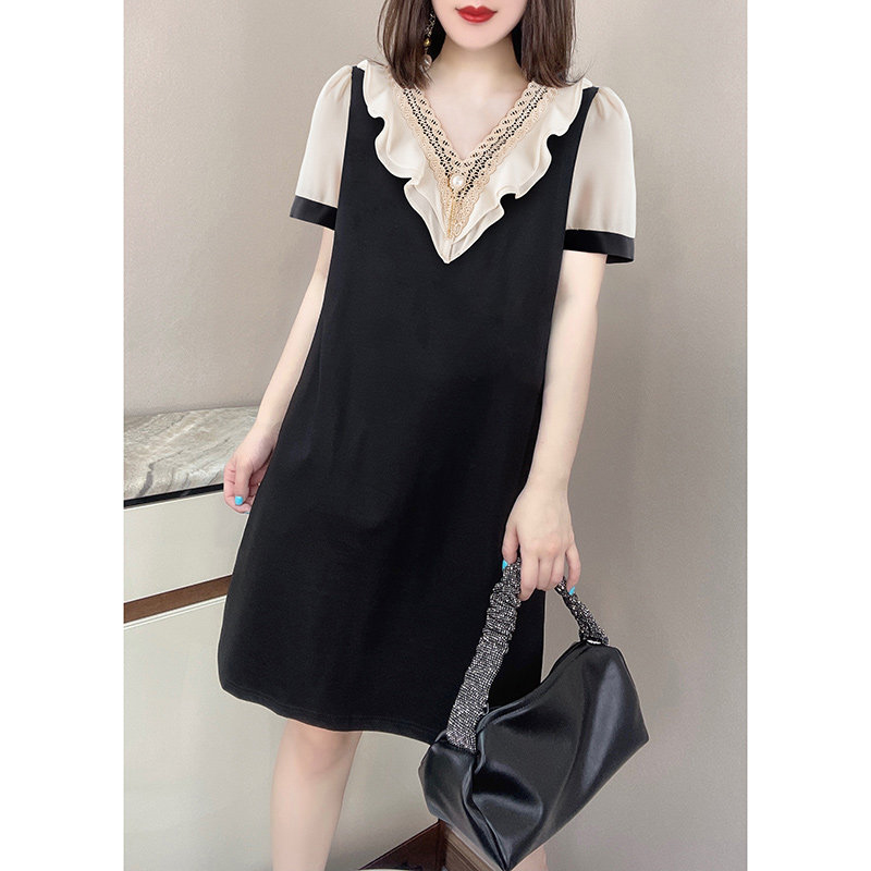 | nameOriginal | Clearance check counter withdraws tail order foreign trade Hepburn style ruffled western style slim short sleeve dress women |