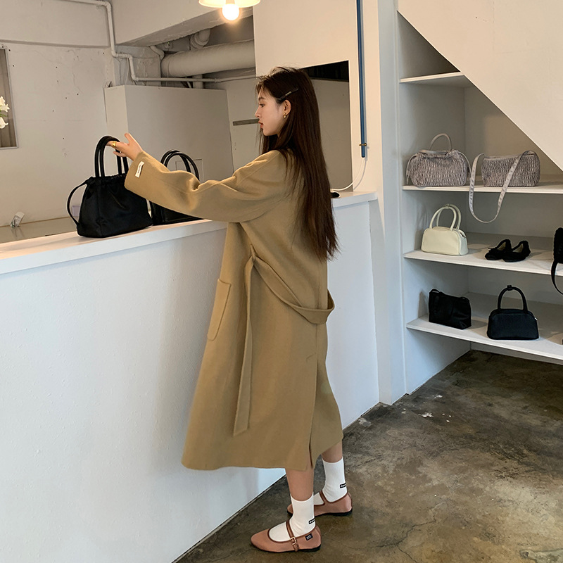 | nameOriginal | [Clearance no refund] large pocket lace-up double-sided woolen coat coat lapel warm woolen trench coat 055 |