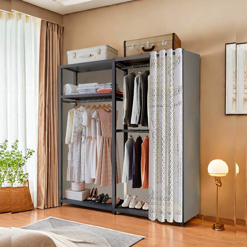 | nameOriginal | Clothes rack bedroom floor-standing clothes hanger household simple open wardrobe cloakroom shelf set device rack container |