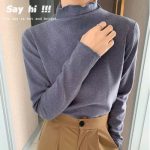 قميص قاع مخملي من الأرز اللزج بحافة سحابية للسيدات للخريف والشتاء بسيط بسطح AB قميص سفلي مبطن بالصوف وسميك ونحيف