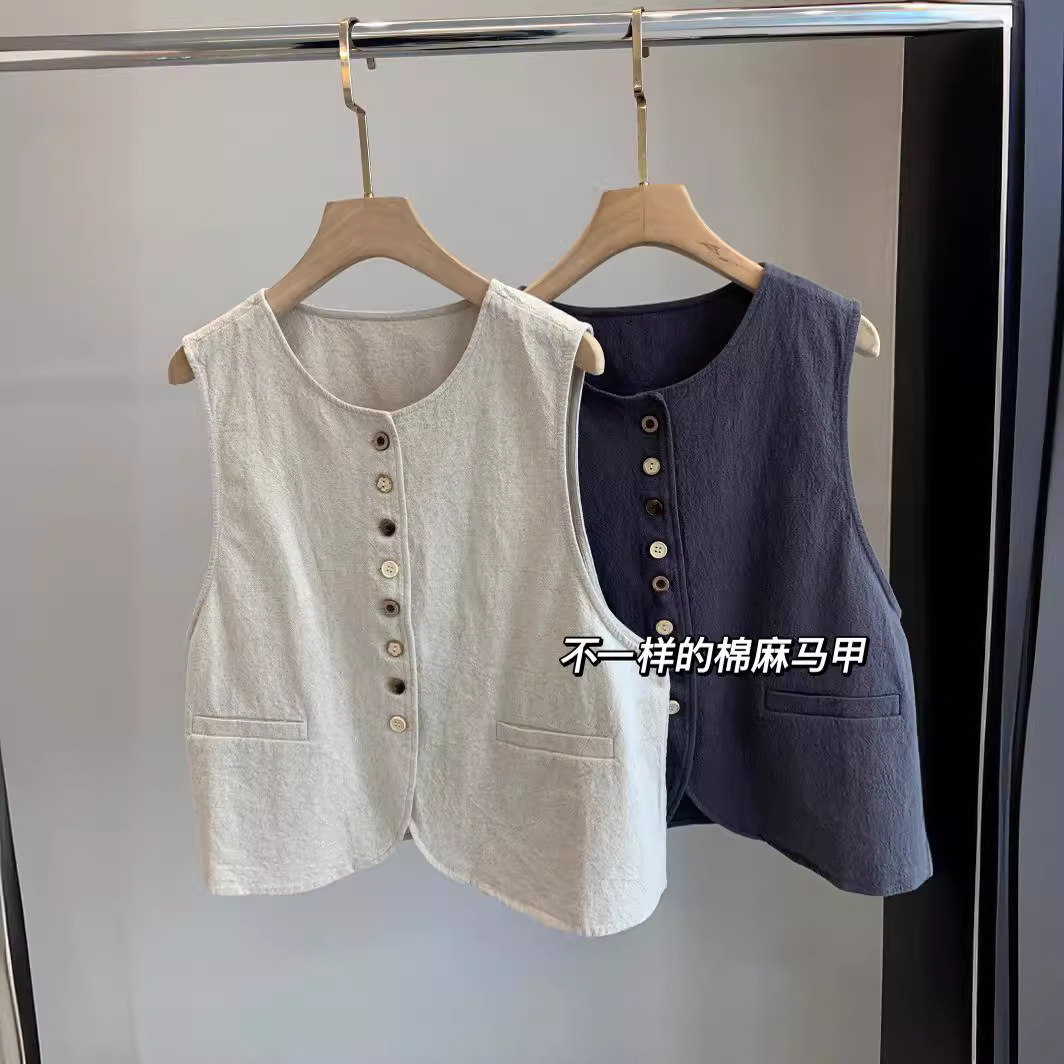 | nameOriginal | Clouds Embossed ~ Western Style Simple All-match Wooden Buckle Cotton and Linen Vest Women's Loose Slimming Sleeveless Waistcoat Spring and Summer |