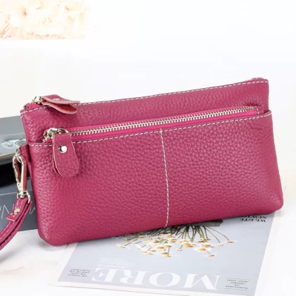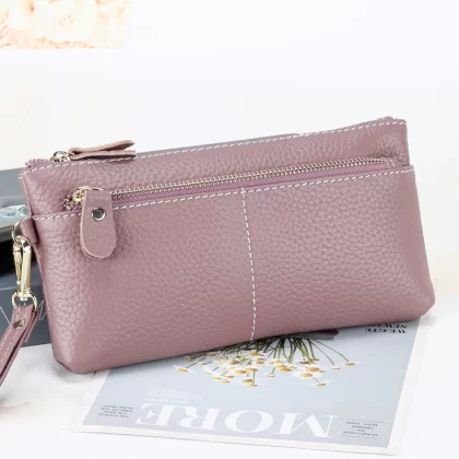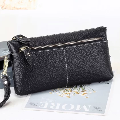 Clutch bag women's genuine leather 2024 new simple popular mobile phone coin purse mom cowhide soft leather clutch bag small bag