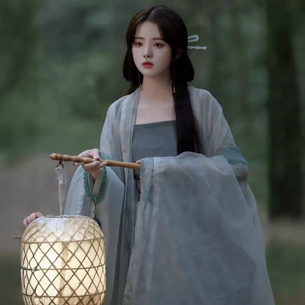 الرياح الباردة أغنية صنع Hanfu فستان قديم المرأة 2023 جديد زوج الصدر كم كبير قميص طويل قطعة واحدة الخصر طول المرأة الربيع والخريف