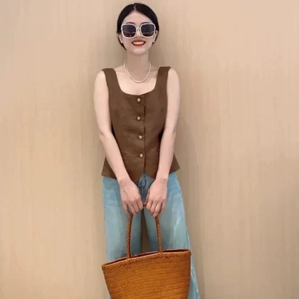 Collarbone Square Neck Fashionable Slim Camisole Top