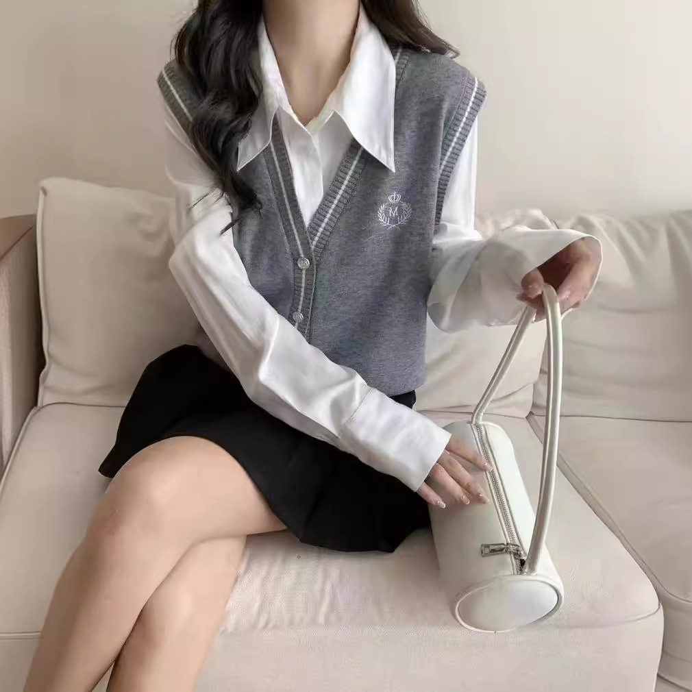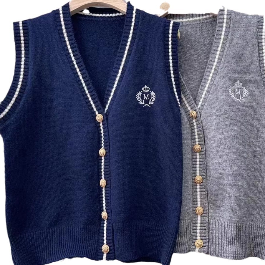 | nameOriginal | College Retro V-neck Knitted Vest Women's 2024 Spring and Autumn New Design Sense Japanese Style Outer Wearing Waistcoat |
