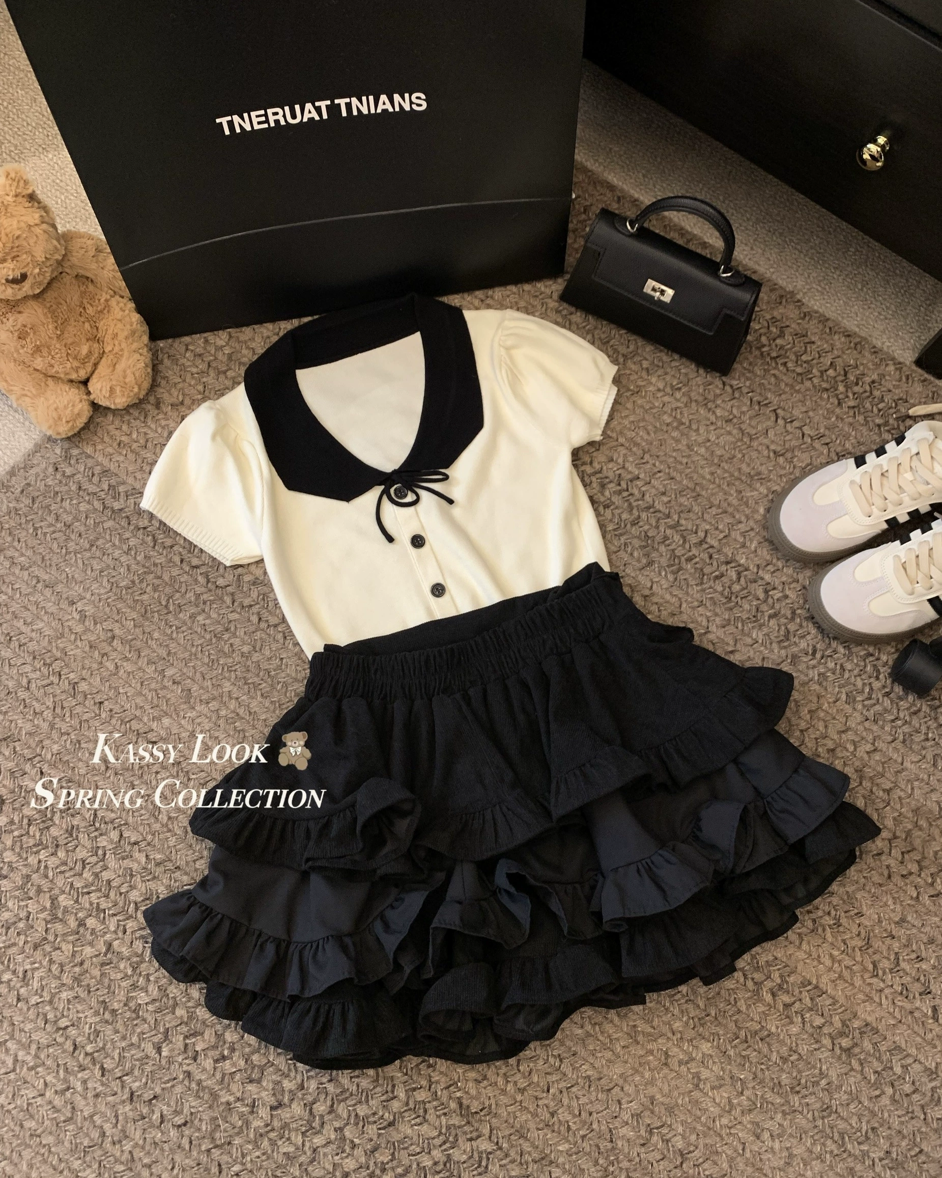 | nameOriginal | College style lapel puff sleeves sweet niche knitted sweater |