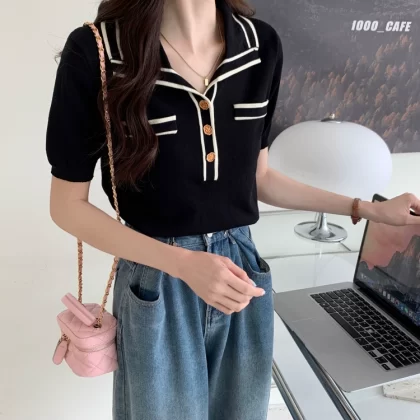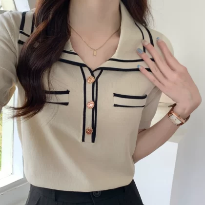 | nameOriginal | College Style Right Shoulder Summer Slimming Short Sleeve POLO Shirt |