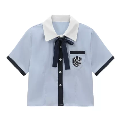 | nameOriginal | College style single-breasted slim blue short-sleeved jk uniform |