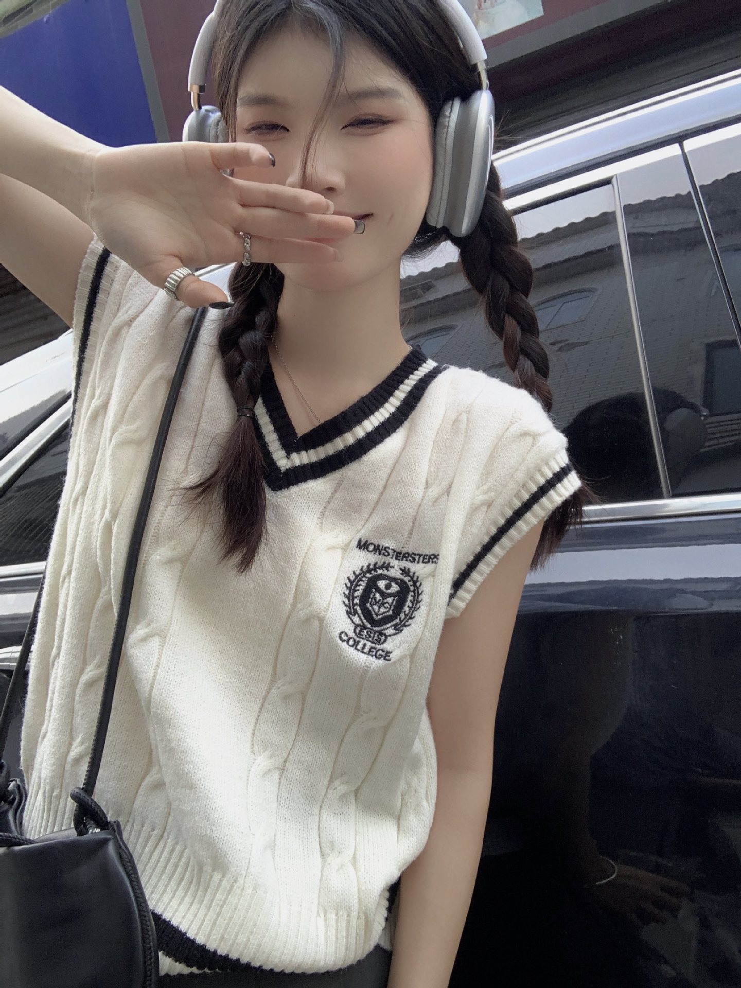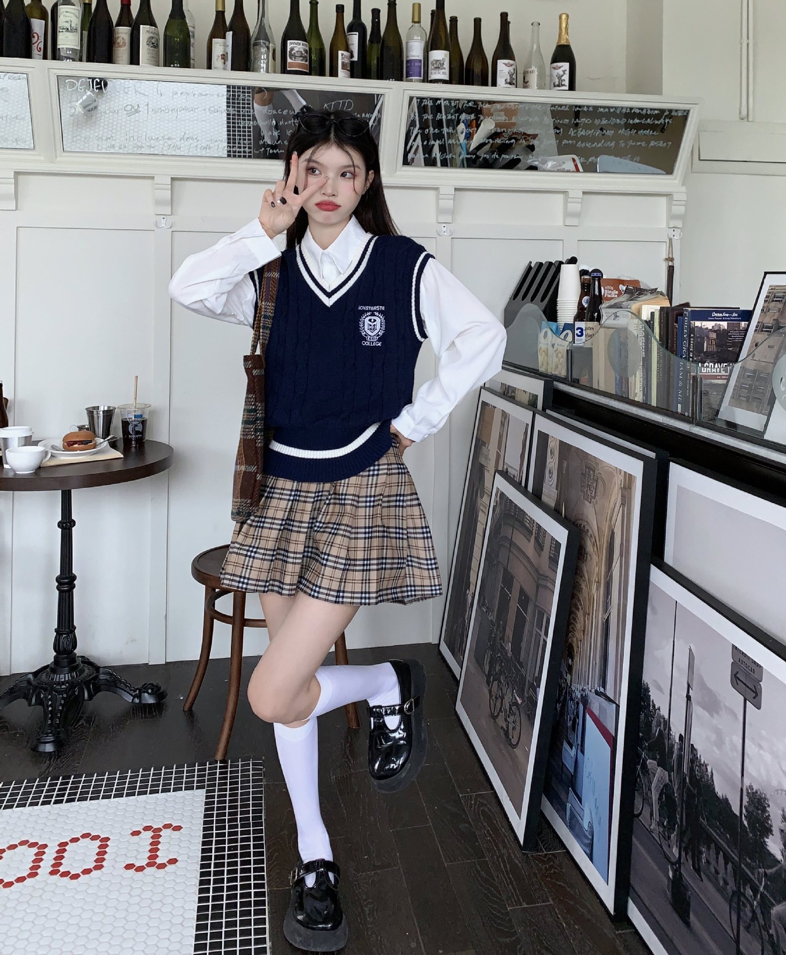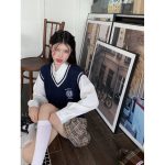 | nameOriginal | College Style V-Neck Knitted Vest Sweater Vest Women's Spring and Autumn New Arrival Stacked Shirt Blue Navy Blue Top Early Spring |