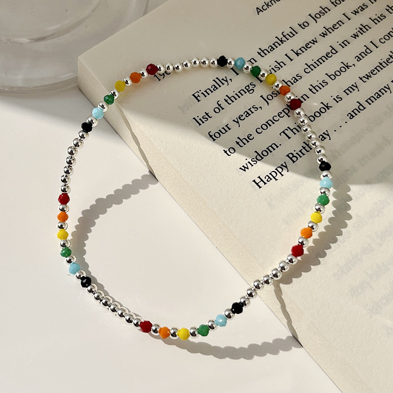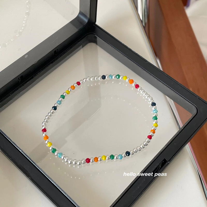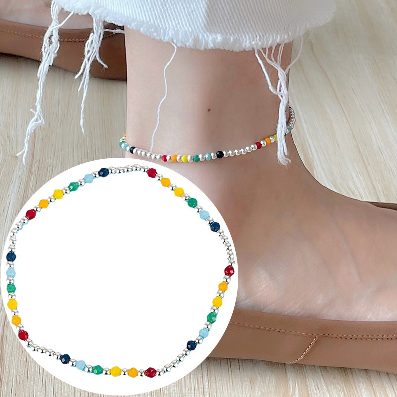 | nameOriginal | Color beaded anklet 925 sterling silver rainbow beanie anklet girl high sense European and American silver beads rainbow anklet |