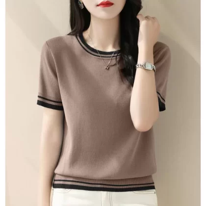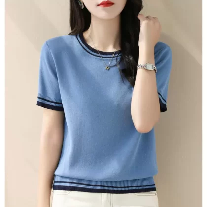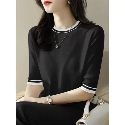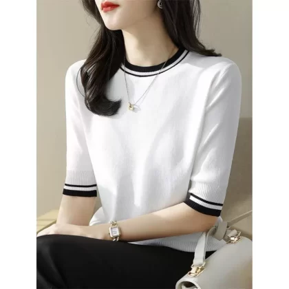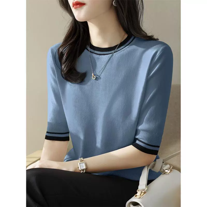 | nameOriginal | Color block round neck ice silk women's fashionable and chic short sleeves |