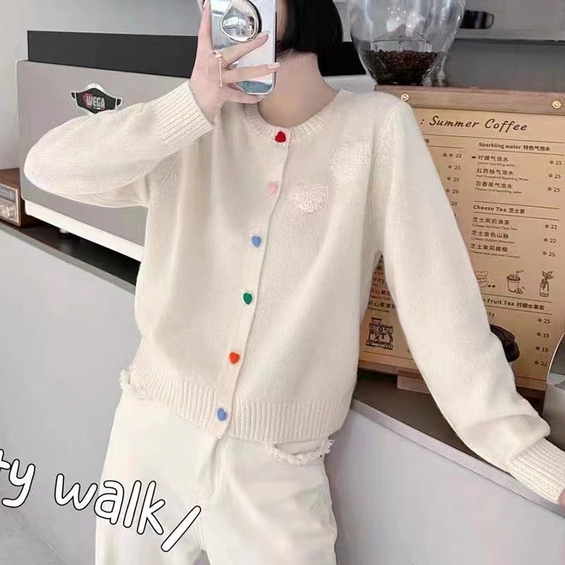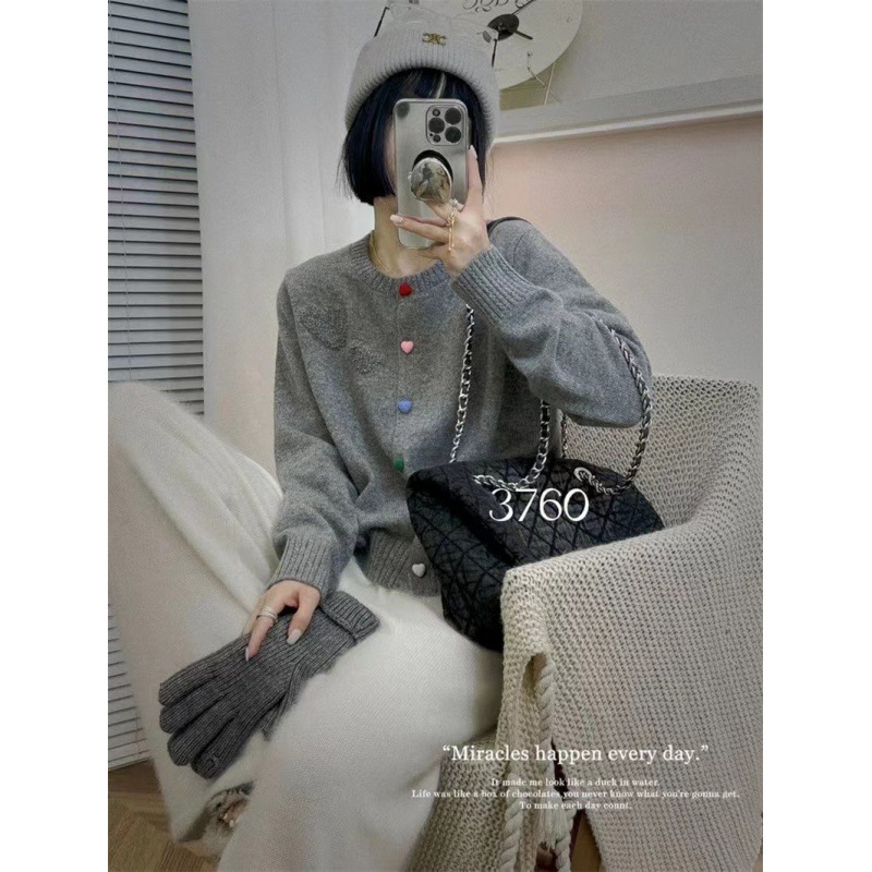 Colorful button soft glutinous sweater coat women's short simple round neck knitted cardigan 2024 Winter
