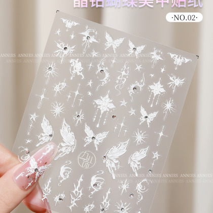 | nameOriginal | Colorful crystal diamond white gauze ice butterfly hollow manicure stickers |