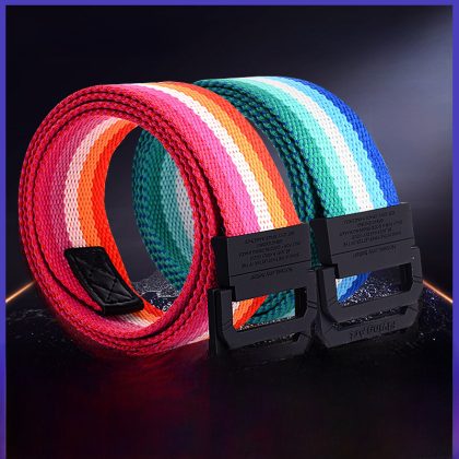 Colorful double ring buckle canvas belt for women men casual hand paint pants belt alloy fashion Korean fashion Men