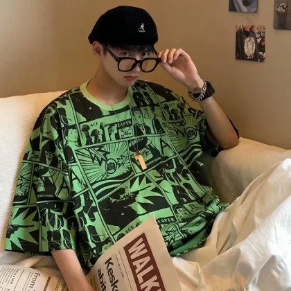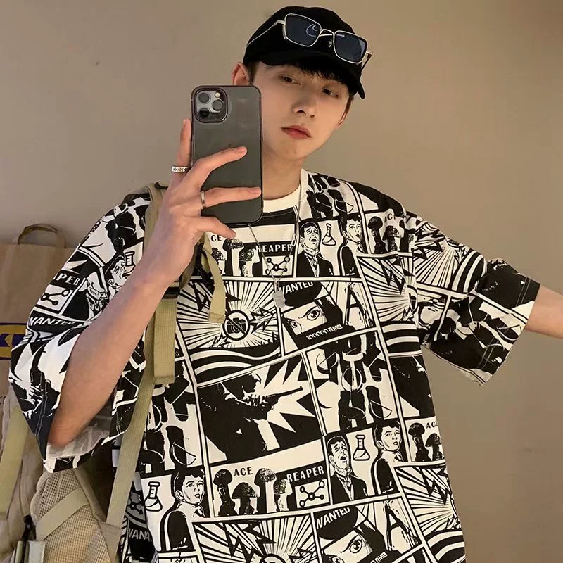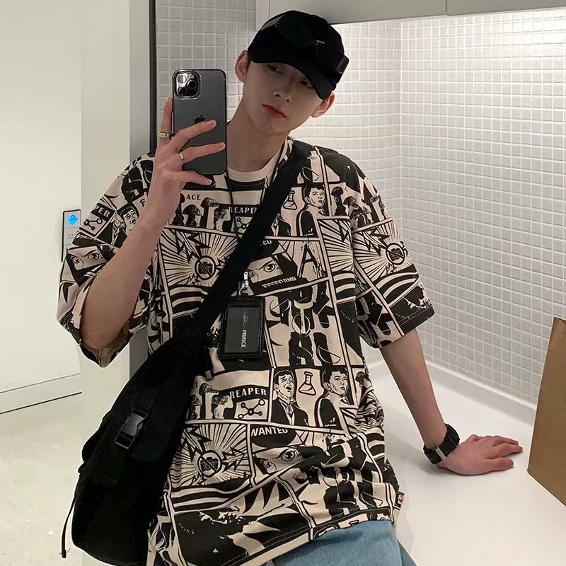 | nameOriginal | Comics full-print short-sleeved T-shirt for men Japanese fashion brand ins loose hip-hop half-sleeved summer trend personalized round neck T-shirt |