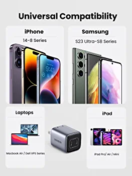 | nameOriginal | UGREEN 45W USB C Charger, Nexode GaN Dual USB C Foldable Wall Charger Block Support Samsung Super Fast Charging 2.0 Compatible with Galaxy S23 Ultra/S22/Note 20, iPhone 14, iPad, MacBook, Steam Deck |