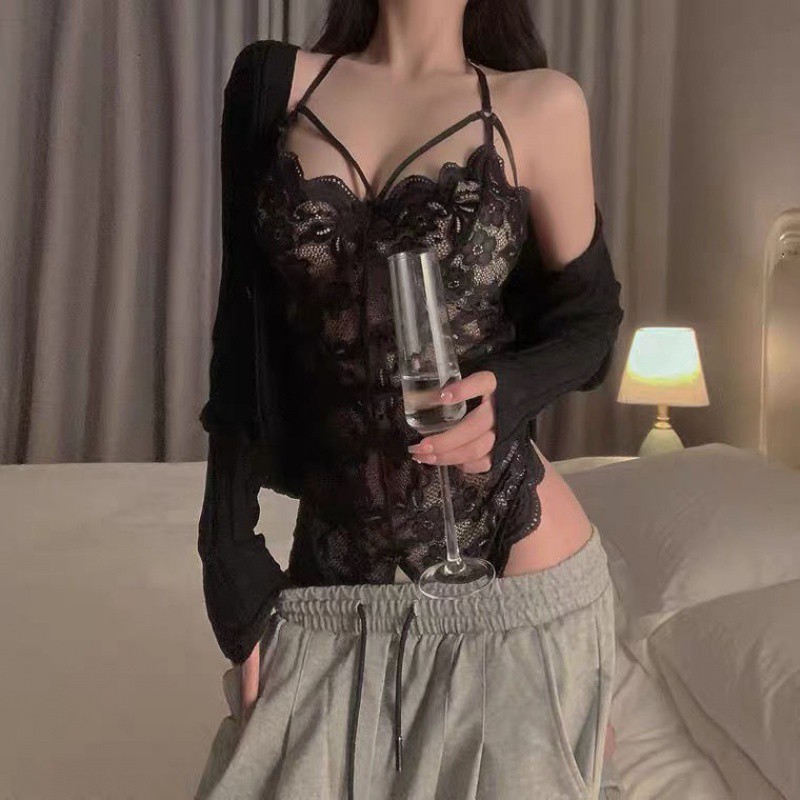| nameOriginal | Confidential delivery sexy lace mesh camisole women's jumpsuit pure want to cover hip free off undercoat one-piece |